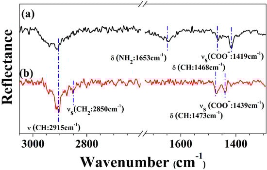 Reflection–absorption infrared (RAIR) spectra of (a) Leu and (b) Tyr on the Cu(110) surface at room temperature.