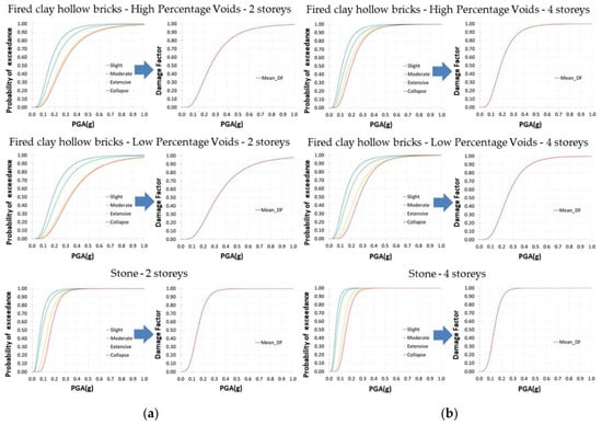 Vulnerability functions for typical unreinforced masonry buildings of (a) two storeys and (b) four storeys.