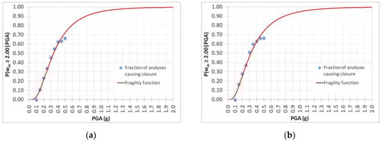 Fragility curve in terms of probability of closure for (a) AC1 and (b) AC2.