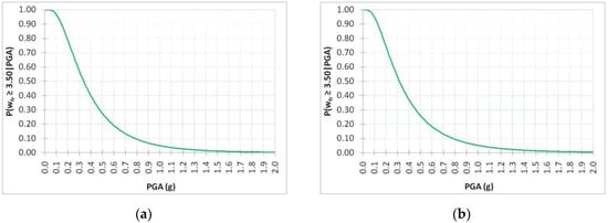 where is the probability of exceeding a particular performance level, PL, for a given IM, Φ is the standard cumulative probability function, β is the standard deviation of the natural logarithm of IM for the performance level, and θ is the median threshold value of IM required to cause the performance level. According to Equation (12), the development of fragility curves requires the estimation of two parameters, namely θ and β.