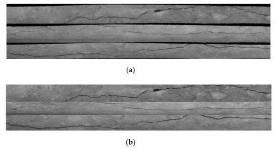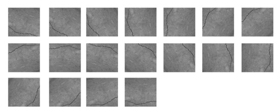 In order to synthesize and enhance our data as authentically as possible, we enhanced the data learned in the recognition network and selected random parameters to process the image. We rotated the images in the patch in equal proportion such that the learning speed would be slower than the reasoning speed. At the same time, it was flipped horizontally and upside down to increase the number of images, to make the cracks clearer, and to improve the accuracy of the training model. Figure 12 and Figure 13 show how we augmented the data.
