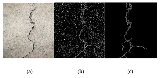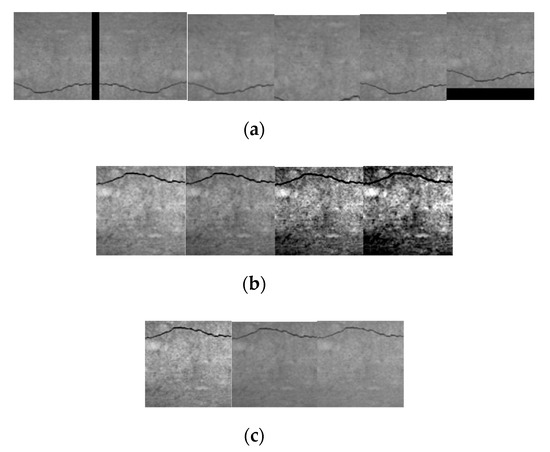 We grayscaled all image patches used for training. The picture directly taken by the camera was a three-channel color picture. It contained the information of an RGB (red, green, and blue) three-channel, while the gray image we want only needed to retain the brightness information of the image; therefore, the color information was discarded. For the bridge crack images to be processed in this paper, the brightness information of grayscale images could fully express the overall and local features of the image; furthermore, the grayscale processing of the image greatly reduced the amount of calculation for subsequent work.