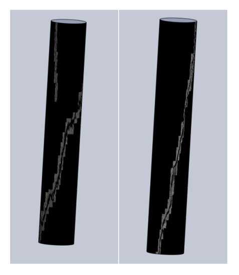 In our system, a method of distortion correction and post-correction image up-sampling of the visual image with the crack detection in the patch was integrated. The detection data was guided by the ground truth, and the patch was spliced using the confidence mechanism to improve the robustness and efficiency of the system. Finally, combined with the IMU and meter data in the system, the three-dimensional shape of the internal crack was visualized. To verify the effectiveness of the distortion correction, we used the SSIM index to evaluate the crack images from different perspectives after the distortion correction and used a confusion matrix to evaluate the crack recognition. To evaluate the performance of the crack detection, we validated our module on a dataset and achieved a final detection accuracy of 96.3%. Figure 15 shows the effect after 3D visualization.