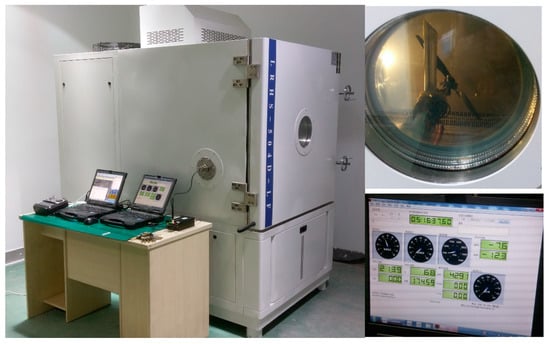 The flight environment of MP solar UAV was the plateau area in winter. In order to study the influence of low temperature on battery capacity, the low-temperature discharge test of energy system was conducted in a low-temperature and low-pressure test chamber, experimental instruments are shown in Figure 3.