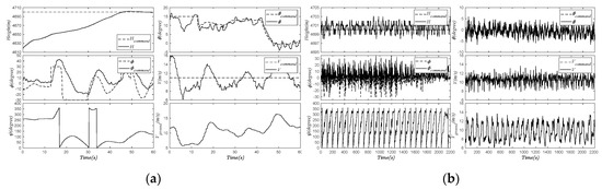 The outer loop was the height and airspeed hold control law, which are shown in Formula (25), and the simulation results of the UAV’s pitch angle and altitude command tracking are shown in the Figure 13. Both the pitch angle and the altitude can well realize the command tracking without static error or overshoot, and the response time of the pitch angle command was about 1.1 s.