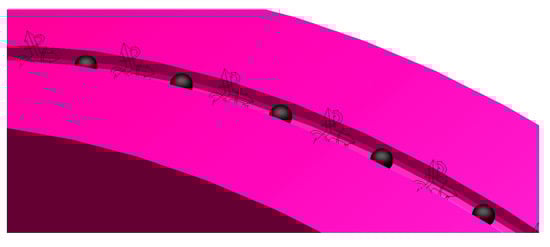 The purpose of the Rkx, Rkb, and Rkt inputs is to represent an orthotropic material property. These are multipliers on the stiffness in the axial (Rkx), bending (Rkb) and twisting (Rkt) directions. Cables commonly bend much more easily than they stretch and twist. Therefore, the following is set: Rkx = 1.0, Rkb << 1.0 and Rkt < 1.0. The specific values of each parameter are shown in Table 3. The notes and definitions of the other parameters in the above formula are given in [2]. The final model of the friction hoisting system and the contact section of the friction pulley are shown in Figure 4.