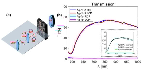 - Maoz, B.M.; Ben Moshe, A.; Vestler, D.; Bar-Elli, O.; Markovich, G. Chiroptical Effects in Planar Achiral Plasmonic Oriented Nanohole Arrays. Nano Lett. 2012, 12, 2357–2361. [Google Scholar] [CrossRef] [PubMed]