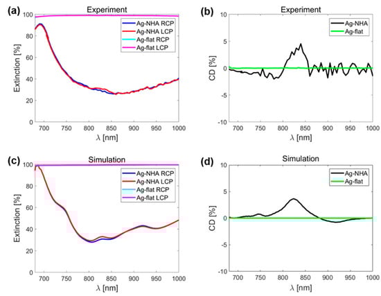 - Wang, Y.; Qi, J.; Pan, C.; Wu, Q.; Yao, J.; Chen, Z.; Chen, J.; Li, Y.; Yu, X.; Sun, Q.; et al. Giant circular dichroism of large-area extrinsic chiral metal nanocrecents. Sci. Rep. 2018, 8, 3351. [Google Scholar] [CrossRef] [PubMed]