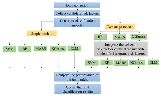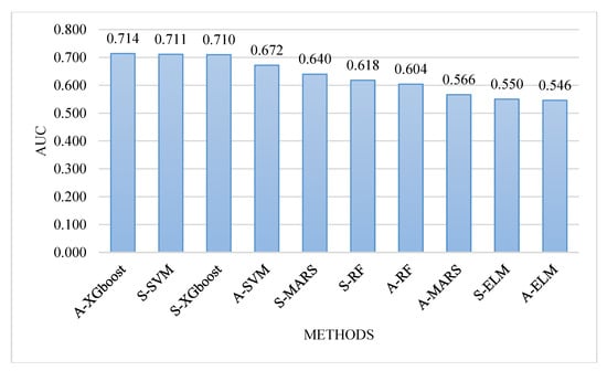 As aforementioned, the 10 risk factors, including X7, X2, X11, X8, X5, X1, X6, X4, X3, and X14, were selected as the important risk factors and then served as the critical predictor variables for constructing the five two-stage methods, including the A-SVM, A-RF, A-MARS, A-ELM, and A-XGboost models.