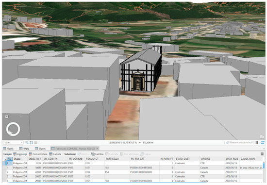 When considering the binomial HBIM/GIS, the studies usually try to manage the object-oriented model into the GIS environment in order to offer system support for planning and building, simplifying thematic analysis and synthetic elaborations, technical-economical evaluations, virtual restoration hypothesis and so on [19,20,21,22]. It has also to be considered that, as in this case we are facing with an existing building, it is fundamental not only to think about the integration between the standards, but also the geo-referencing accuracy of the existing building in a 3D GIS environment. This topic has been solved lately through different solutions as, for example, the “FME (Feature Manipulation Engine) Exporter for Revit” plugin [17,21], which allows to keep the spatial reference when exporting from Revit to ArcMap, ArcScene or QGIS, placing the building in the correct position.