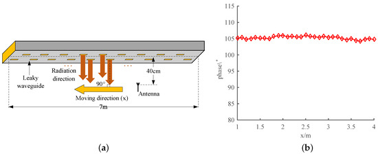 Phase distribution of the leaky waveguide method: (a) Configuration of leaky waveguide and receiving antenna. (b) The phase distribution of different measuring point.