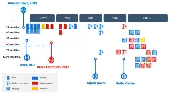 - Available online: https://en.wikipedia.org/wiki/List_of_tallest_wooden_buildings (accessed on 14 February 2020).