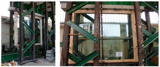 Timber and glass composite systems are lately intensely investigated due to extremely high-aesthetic and -ecological value in addition to their cost-effectiveness and the possibility of significant load transfer [40]. Nevertheless, design models and current European standards include the usage of glass panels as the secondary elements [42], which means the positive impact of these elements when transferring transverse loads caused by the earthquake have to be ignored [39]. According to the EC8, it is necessary to calculate the primary structural elements within the allowed displacements regarding the protection of the secondary elements. If the problem is approached as defined in Eurocode 5 (EC5) [87], timber wall diaphragms shall be designed to resist both horizontal and vertical actions imposed upon them, and shall be adequately restrained to avoid overturning and sliding. Racking resistance is provided by in-plane plane stiffness of board materials, diagonal bracing or moment connections. Method A from EC5 defines that shear diaphragms with windows and doors do not contribute to stability of the structure. Method B is less restrictive and it proposes to regard panel parts from each side of the opening as separate panels. Since the openings decrease the racking resistance and significantly reduce the horizontal stiffness of precast elements, glass helps to enhance these properties. In recent years several articles on quasi-static and dynamic tests of timber–structural glass composite systems were published [39,40,88,89,90,91,92,93,94] (Figure 4). The researchers have concluded that timber–structural glass load-bearing systems can be used in various construction applications, depending on the required bearing or ductility levels. Žarnić et al. [95] investigated deformation capacity, lateral strength, stiffness and strength deterioration and energy dissipation capacity in order to provide data for the future development of computational models and design guidance for the new codes. Nevertheless, it is possible to devise a combined system with timber and structural glass in which each material could transfer load, and in mutual interaction of constitutive elements could be resistant to earthquake. Several extensive tests of composite systems timber–structural glass have been conducted with various types of bonding timber and glass. Bonding glass on timber proved as a good example for accomplishing high-load-bearing of composites, but deficiencies are noticed in the level of ductility along with possible problems with the durability of the structure. Further research on timber–glass composites is needed to get the structural response in seismic actions. In addition, factor q (force reduction factor) of structures constructed with hybrid laminated glass–CLT structural panels need be derived. These results may contribute to future upgrading of EC 8 where glass-based structures are not yet addressed [95]. Besides the load-bearing characteristics and development of structural design tools the special attention need to be paid to energy efficiency of developed building components [96].