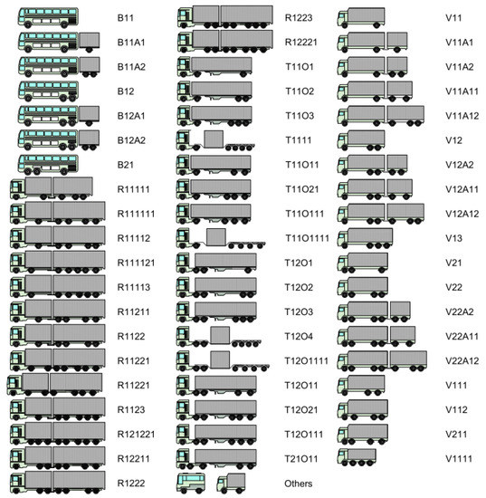 In [20] commercial lorries in Moerdijk traffic have been classified in the 53 relevant subclasses illustrated in Figure 1.