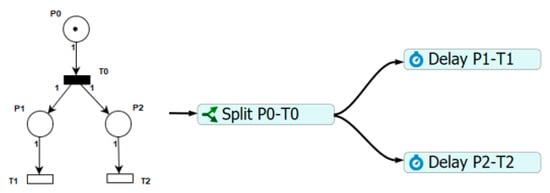 - Boukelkoul, S.; Redjimi, M. Mapping between Petri nets and DEVS models. In Proceedings of the 2013 3rd International Conference on Information Technology and e-Services (ICITeS), Sousse, Tunisia, 24–26 March 2013; pp. 1–6. [Google Scholar] [CrossRef]