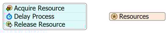 - Pels, H.J.; Goossenaerts, J. A Conceptual Modeling Technique for Discrete Event Simulation of Operational Processes. In Advances in Production Management Systems; Springer: Boston, MA, USA, 2007; pp. 305–312. [Google Scholar] [CrossRef]