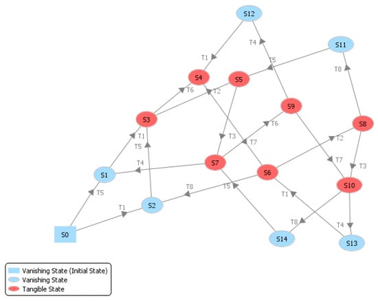 - Dingle, N.; Knottenbelt, W.; Suto, T. PIPE2: a tool for the performance evaluation of generalised stochastic Petri Nets. ACM SIGMETRICS Perform. Eval. Rev. 2009, 36, 34. [Google Scholar] [CrossRef]