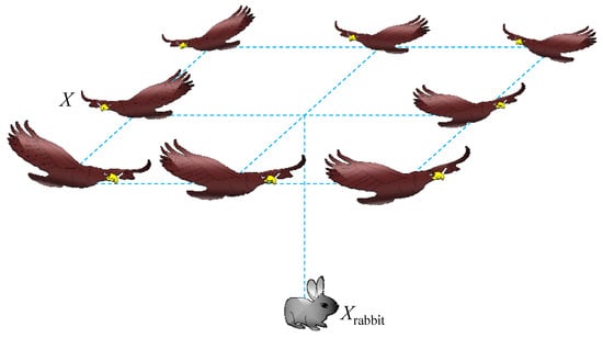 In this situation, the prey is tired and the Harris hawks can perform the surprise pounce. The position can be updated using the following equation [58]: