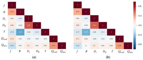 Correlation coefficient of the seven input variables: (a) blast-induced ground vibration database; (b) Monte Carlo simulation.