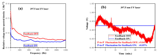 4.1. Suppression of 795-nm NIR and 397.5-nm UV Laser Intensity Noise