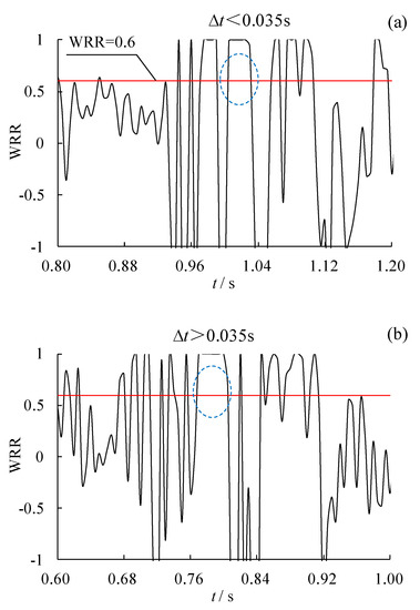 where t is the time interval when the WRR continues to exceed 0.6 and is the maximum allowable time interval, = 0.035 s.