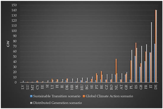 Net photovoltaic (PV) production capacity forecast in the EU based on Entso-E scenarios in 2040 based on [].