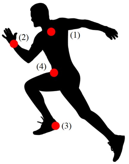 Sensors positions for the Daily Life Activities (DaLiAc) dataset: (1) chest (C), (2) right wrist (RW), (3) left ankle (LA), (4) right hip (RH).