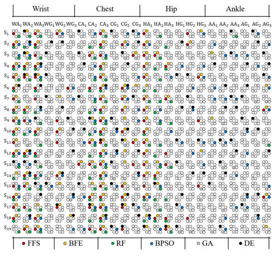 The ranking of the features for each monitored subject S of the DaLiAc dataset in the adapted version of BPSO introduced in this article is presented next: