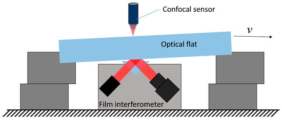 As described in the section above, the motion error caused by the linear guide represented by was measured by an in-house developed film interferometer. The principle is shown in Figure 4.