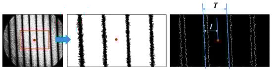 As shown in Figure 5, a small angle was intentionally set between the optical flat and the moving axis of the stage. During the axial movement of the stage, the distance between the two optical surfaces gradually changed. The distance was measured by both the confocal sensor and the film interferometer. The images of the interferogram were captured continuously and the phase value of the central point was computed based on image processing, as shown in Figure 6.