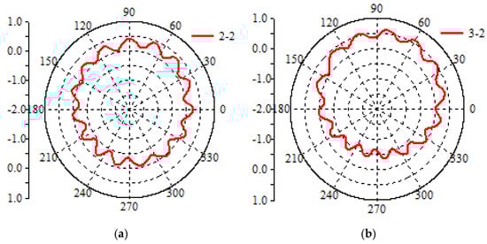 Polar diagram of roundness: (a) No.1 wheel; (b) No.2 wheel.