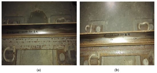 The investigation of the rail condition indicates that the different rail types show different corrugation characteristics, and the obvious rail corrugation area is mainly occurred on the curve with the radius below 600 m (denoted as R600). Figure 16 exhibits the rail corrugation diagrams in different sections, which indicates significant rail corrugation phenomena on the rail surface.