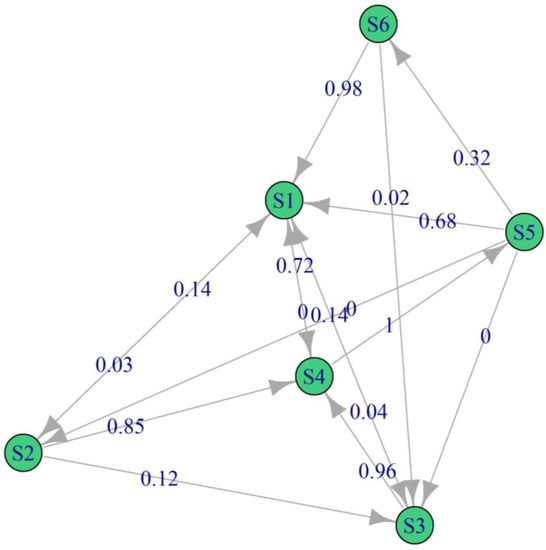 were calculated in accordance with Equation (22). For the process studied, for the 6-state model, the determination of the stationary probabilities