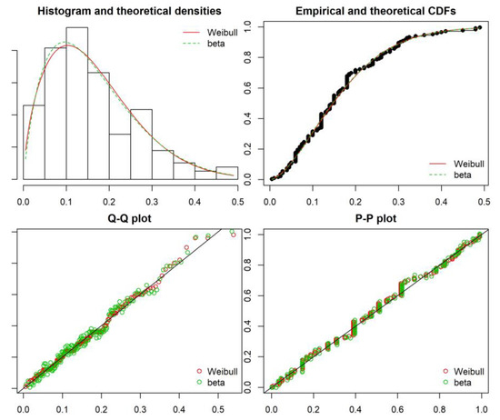 Another goal was to compare the results according to the assumptions made, concerning the forms of distribution of the examined variables. In the literature this analysis is often omitted and it is assumed that the examined variable has an exponential distribution. This allows to use Markov’s processes, whose parameter estimation is simpler and is described in more detail in publications. Such an assumption—as the study has shown—may lead to different results and effectively to form an incorrect assessment of the process/system studied. The intention of the authors was to indicate that omitting an important stage of statistical analysis of the collected data and assuming a priori the form of distributions does not guarantee the correctness of the obtained analyses.