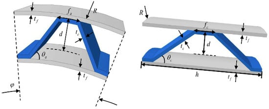Illustration of a unit cell sandwich core support structure for curved and flat plates [48] (reproduced with permission from Yang et al. Polymer Testing; published by Elsevier, 2018).