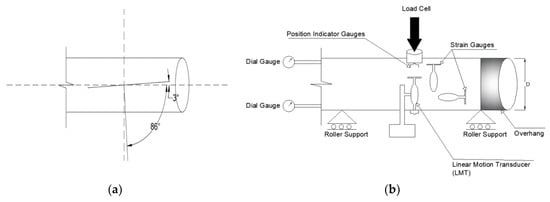 Material verification was controlled following the “coupon” testing methods and based on the lamination theory to calculate the maximum measured stiffness and strength capabilities of the GFRP members []. The first step was to test a rectangular-shaped strip layer sample The actual strength measurement of the tube had an error at the very end of both fixing locations because of the stress concentrations around those regions [].