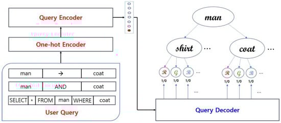 We also examined the result for a ternary Boolean operation. Previously, we did not use a Boolean operation with three query terms. A third term was arbitrarily added to evaluate the flexibility of the proposed approach. The results for the query “men AND pants AND black” were good, indicating that the proposed deep-learning network works correctly and flexibly even for user queries not included in the training.