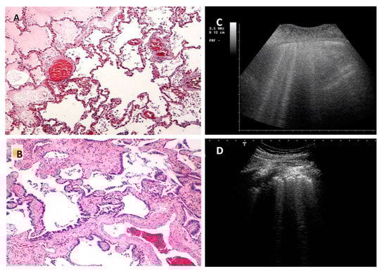 Possible relationships between Leslie’s different histopathological patterns [12,16] and the expected pulmonary ultrasound artifacts, according to the hypothesis introduced in the review.