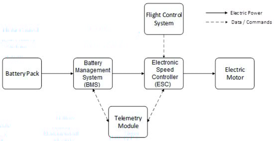 Because of this transformation, additional novelties were achieved: (1) A more efficient engine, less heavy and bulky; (2) a greater ratio of torque vs. size; (3) the development of a dedicated software in order to monitor and control the parameters related to the new power system; (4) the design of a new and less-consuming telemetry module able to establish communication between the ground control station (GCS) and the RPA BMS and motor controller; and (5) the design and 3D printing of parts such as battery case, telemetry module chassis, propeller cone, and motor controller housing.