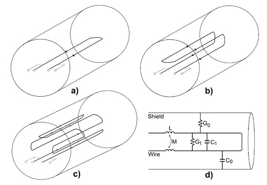 The increase in resistance owing to the skin effect is calculated from Equation (4) [3,28]. As was established in [2], there are no significant Eddy current losses in each wire due to the proximity of the others. The increase in resistance due to the Eddy currents induced in the cylindrical shield is expressed by Equation (5) [2].