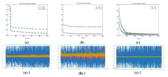 The results of the following experiments can be found in Figure 3a–c. Each of the three models presented can be characterized as follows. In the case of Model 1 in Figure 3a, the error was very high at the beginning, but it decreased as progressed. In Model 2 in Figure 3b, the error was low from the beginning. We conclude that because it is composed of binary features, the noise is low, and the prediction performance is good from the beginning. In the case of Model 3, data used as input features were publicly used by investors. In Figure 3c, the error was reduced, but the noise was very high.