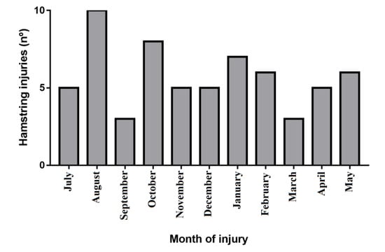 Hamstring injuries distribution, attending to the month of the year.