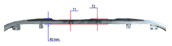 In Figure 2, 40 mm represents the original thickness value, T1 and T2 are the remaining thickness value, the wear loss of the PCCS is the original thickness value minus the smallest value between T1 and T2 (the smallest remaining thickness value is taken as the record standard in practical).