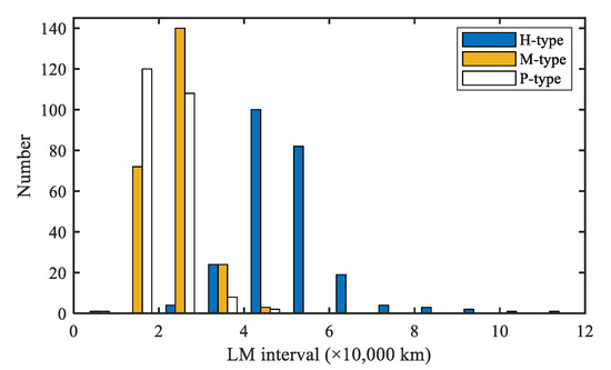 Table 3 shows that the average LM for the three types of PCCS is quite different. For the same type, the LM is also with a significant distinction. For instance, for the H-type, the longest LM is 11.14 which is almost five times longer than the shortest LM 2.2. Therefore, the LM cannot be determined by the statistical distribution directly. Each type of PCCS has its own LM and should be estimated accurately. Figure 5 demonstrates the average of H-, M-, and P-types intuitively.