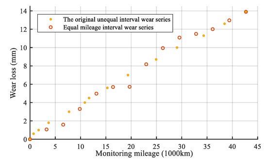 After converting the unequal interval wear series to equal interval series, a linear wear model based on the equal interval wear series can be established.