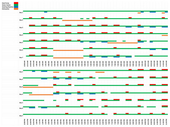 - Deadline—The appliance has a deadline associated by which it needs to finish the task assigned to the appliance. The deadline is chosen by the user and cannot be smaller than the running duration of the appliance which is an operational constraint [44]. Examples include washing machine, clothes dryer, dishwasher, etc.