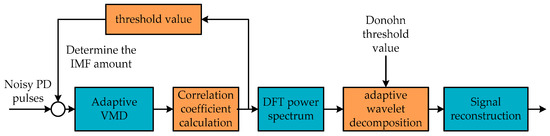 - Jiao, S.; Shi, W.; Liu, Q. Self-adaptive partial discharge denoising based on variational mode decomposition and wavelet packet transform. In Proceedings of the 2017 Chinese Automation Congress (CAC2017), Jinan, China, 20 October 2017; pp. 7301–7306. [Google Scholar]