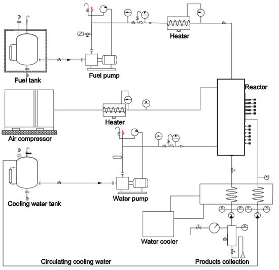 Supercritical HFR, the main device to verify the generation of hydrothermal flame and study its characteristics, can withstand the designated high pressure and high temperature, confine hydrothermal flame in a certain space, and significantly alleviate corrosion and salt-deposition. According to the feeding modes of reactants, reactors can be sorted out into semi-batch reactors and continuous reactors. The former is mainly used to explore the ignition feasibility and characteristics of simple organic compounds, such as methane and methanol. Unlike semi-batch reactors’ one-off feeding, continuous reactors can constantly feed fuels and oxidants into the chamber to sustain the flame. Additionally, almost all of the different continuous reaction systems share the similar flow diagram, which means the designing concepts are nearly identical (Figure 1). The effects of their different structures and operating parameters (fuel concentration and flow rate, etc.) on the characteristics of flame ignition and extinction and the efficiency of removing pollutants are the primary concerns. Moreover, continuous reactors consist of tubular and volumetric structures, such as TWR and WCHB. With diverse research purposes, the reactors used by relevant groups have different appearances. If the hydrothermal flames are not properly controlled in the reactor, this will lead to the acceleration of thermal wear and corrosion and the production of nitrogen oxides [49]. The increasing development and improvement of reactors determine the study of combustion characteristics of different reactants under different operating conditions and the verification and perfection of numerical simulations. Therefore, taking research institutions as the main body to comb its development vein from the two major classifications of the reactor, this part aims to point out the inadequacies of reactor structures and to give valuable suggestions.