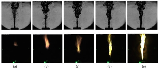 Air ratio shoulders important responsibility for flame strength, namely flame temperature distribution. In Serikawa’s experiments, the flame could be barely seen at a low air ratio (m=1.1) [49]. With the increase in air ratio, the weaker flame became more intense and a red luminous flame was clearly observed at the air ratio higher than 1.8. On the contrary, through the measurement of OH and CH free radicals’ distribution by chemical fluorescence spectrum, Príkopský found different results that excess oxygen had no effect on the determined flame position but only slightly strengthened the flame intensity [27]. Therefore, determining the effect of excess oxygen should be further studied in the future.