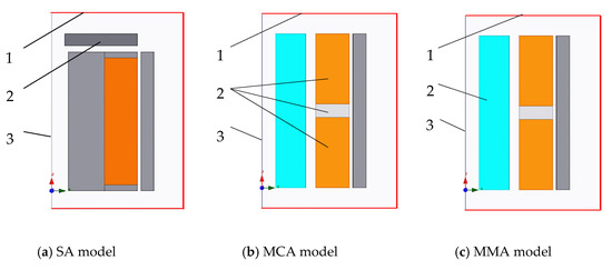 Thus, in the present study, the three-dimensional (3-D) structures of the SA, MCA, and MMA are assumed to be symmetric about the z-axis, and are therefore replaced by two-dimensional (2-D) models to simplify the modeling process and reduce the calculation time. ANSYS Maxwell simulations are then performed using the following magnetostatic field equations [42]: